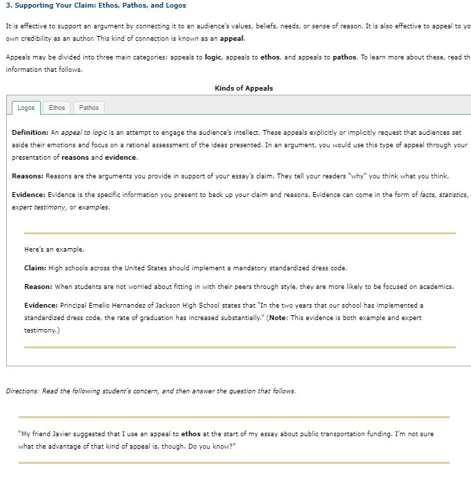 Solved 3 Supporting Your Claim Ethos Pathos And Logos It Chegg Com